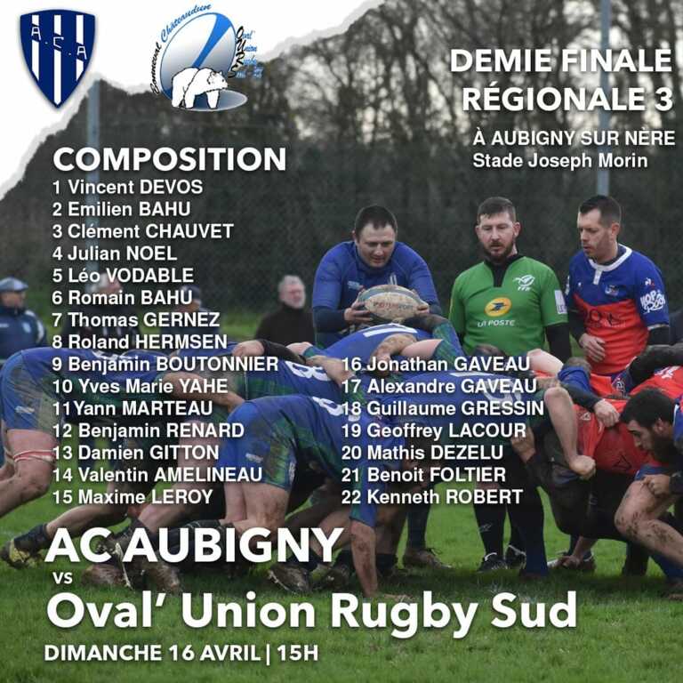 Voici l’équipe qui affrontera l’OURS 28 demain à 15h pour la demie finale.